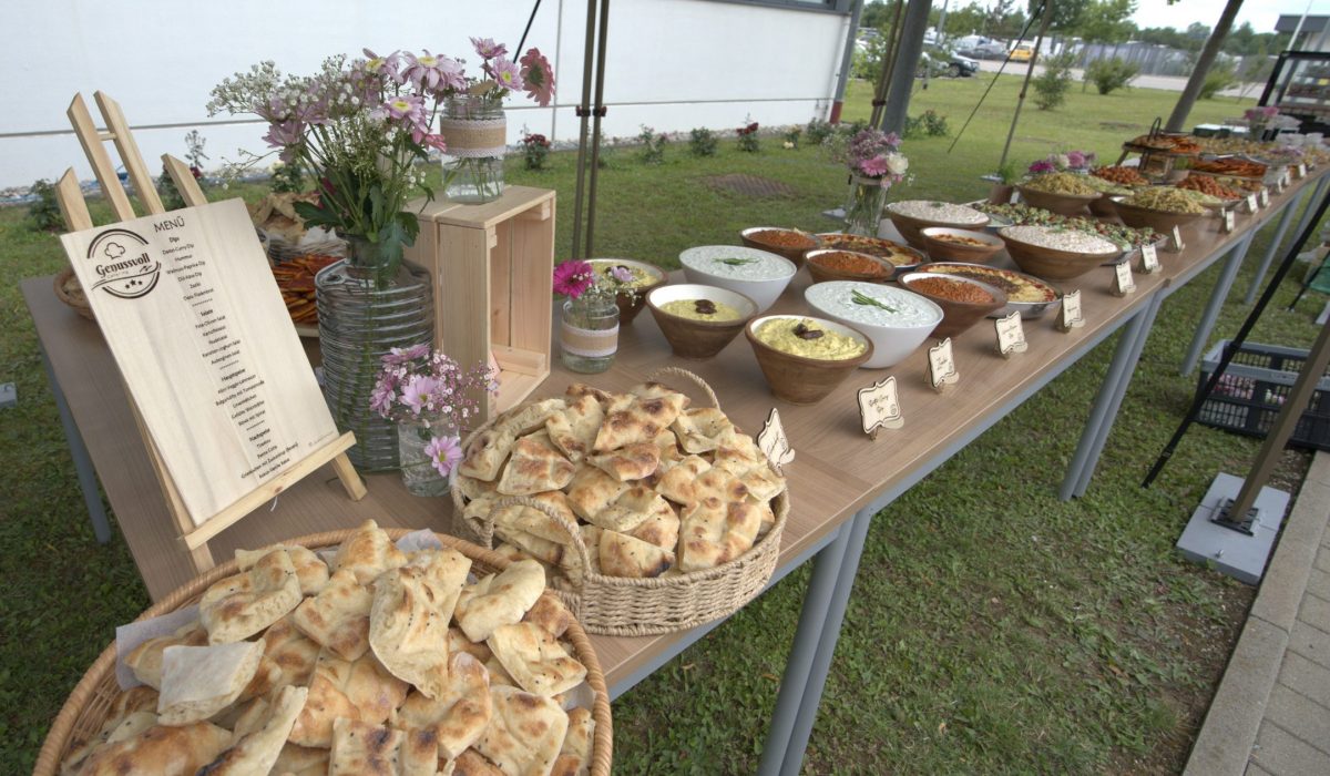 Genussvoll Catering bietet eine breite Auswahl an Speisen – von aromatischer orientalischer Küche bis hin zu klassischen deutschen Gerichten wie Rinderbraten mit Spätzle. Ob Mezze-Platten oder traditionelle Hausmannskost, hier ist für jeden Geschmack etwas dabei. Wünsche und individuelle Vorlieben können direkt besprochen werden.